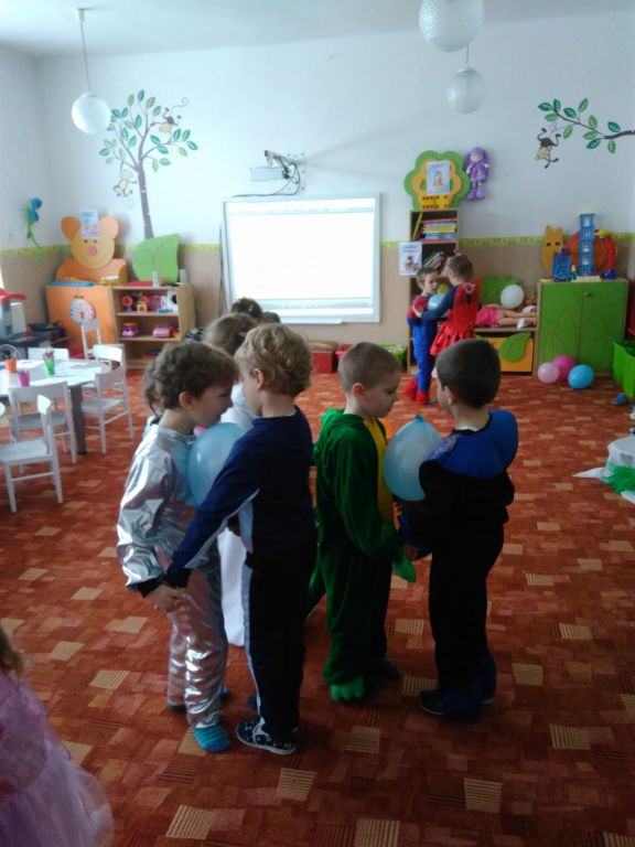 Až konečne prišiel deň 31.január, keď sa celá materská škola premenila na rozprávkovú krajinu, v ktorej sa stretli takmer všetky rozprávkové bytosti – princezničky, víly , snehuliak ale i kozmonaut, policajt, mušketier, captain america, ninja, spiderman, pirát, ale i zvieratká krokodíl , koník a lienka. Trieda ožila vravou a veselou hudbou. Bola to riadna zábava. Masky súťažili, hrali sa, spievali, tancovali a hodovali. Verte, že tancovať a súťažiť v maskách nebolo vôbec jednoduché. Stoličkový tanec rozihral a nakoniec balónový tanec veľmi unavil. A keďže každé jedno dieťa bolo jedinečné a úžasné, preto i každé zvíťazilo. Odmenou boli medaily a k obedu šišky. Veru, bol to vydarený a veselý karneval.
