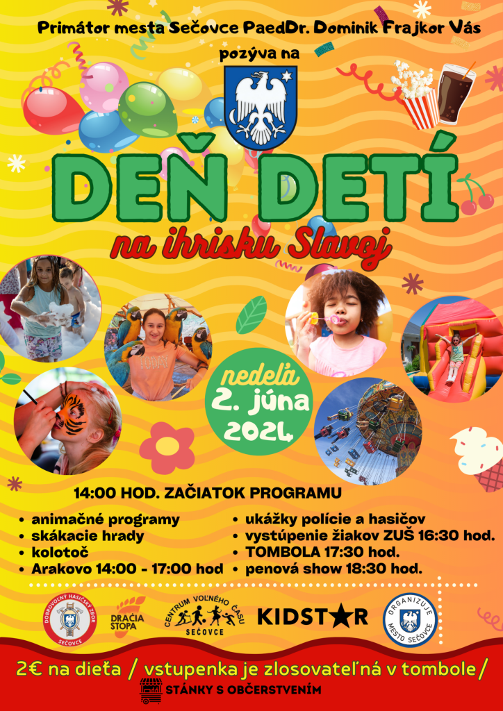 Primátor mesta Sečovce pozýva všetkých na Deň detí na ihrisko Slavoj v nedeľu 2. júna 2024 so začiatkom o 14.00 hod.