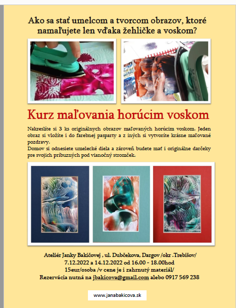 Som Janka Bakičová, lektorka kurzov maľovania horúcim voskom https://janabakicova.sk/
